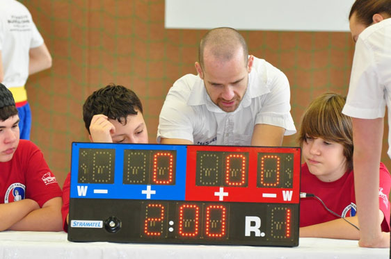 Souverän geleitet wurden die Kämpfe von den Kampfrichtern Matthias Morche, Tobias Mahr + Yuma Schindler. Für die richtige Anzeige der erzielten Treffer sorgten am Kampfrichtertisch Deniz Toprak, Alexander und Victor Fournier.