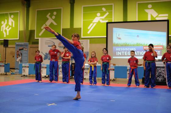 Die Abendveranstaltung wurde aufgelockert durch drei Kampfsportvorführungen. Den Anfang machte die behinderte Jasmin Glock mit einer tollen Karate Kata.