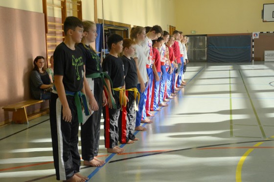 Trainingsinhalte des Lehrgangs waren die nach dem neuen Prüfungsprogramm geforderten Basiselemente zur Selbstverteidigung + Fallschule für den gelben, orangen, grünen und blauen Gürtel. Die schweißtreibende und intensive Umsetzung der Übungen erfolgte mit und ohne Partner.
