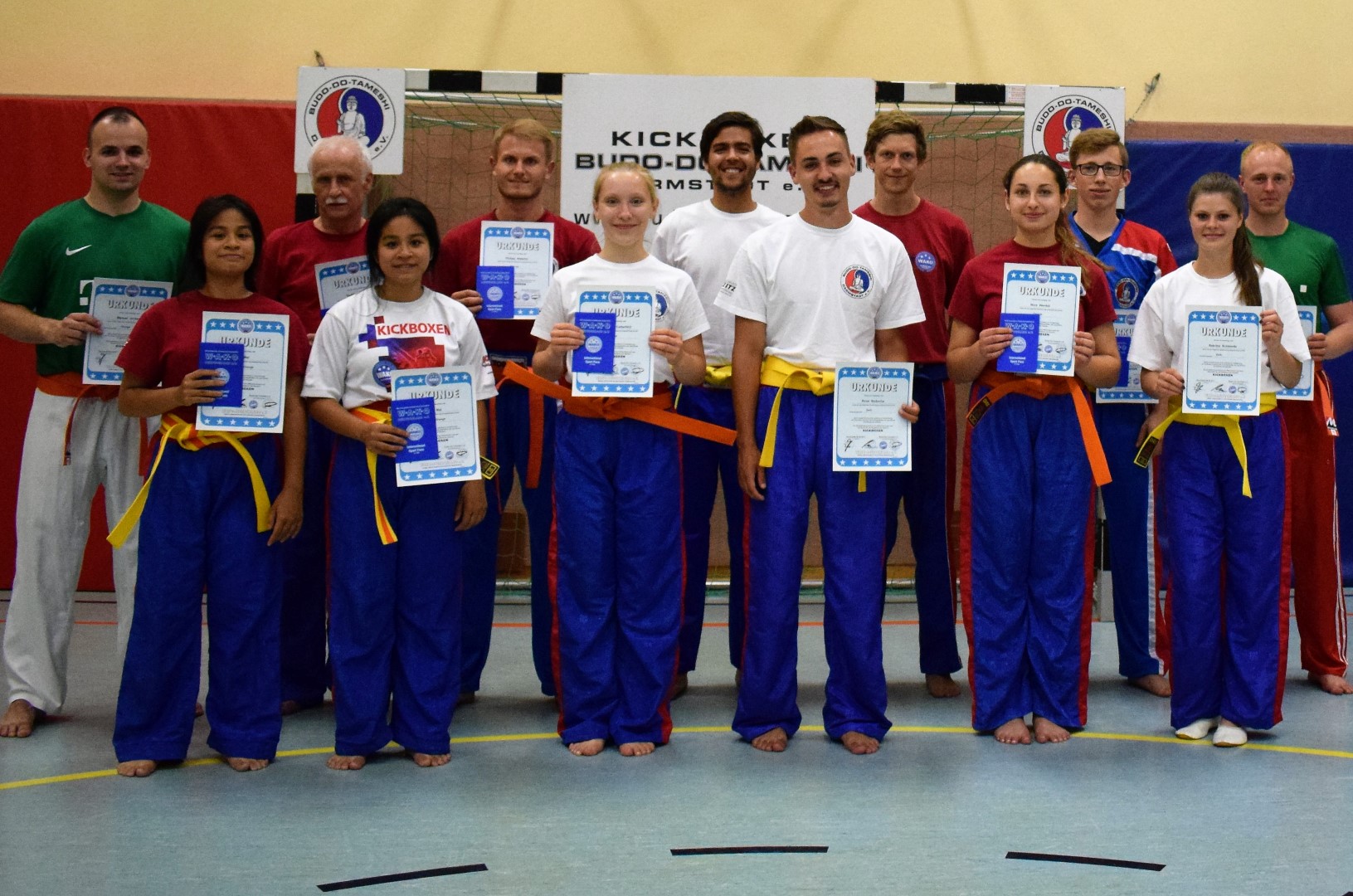Auch wenn es für die Teilnehmer anstrengend und schweißtreibend war, konnten alle am Ende der mehrstündigen Prüfungen glücklich die Urkunden für ihren neuen Gürtel in Empfang nehmen.