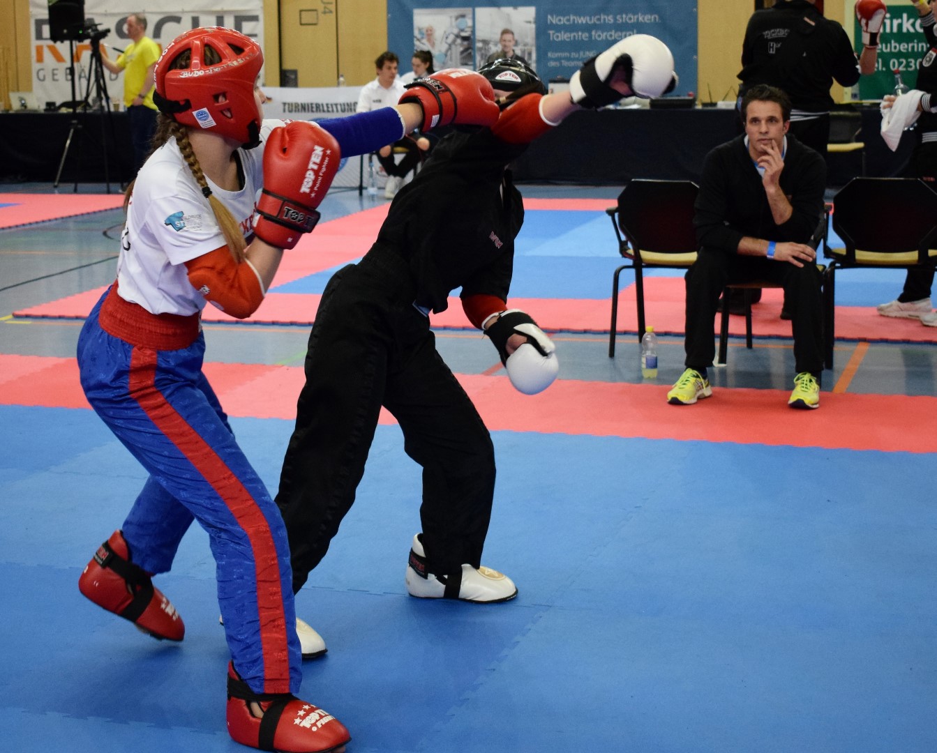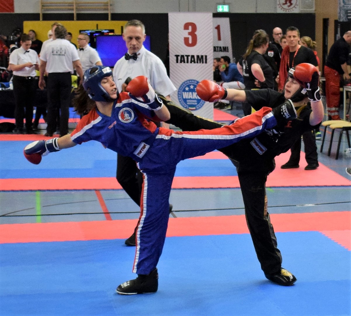 Der Deutsche Vizemeister im Pointfighting (PF) Feidhlim Gardian erkämpfte in der Gewichtsklasse -69 Kg mit blizschnellen varablen Techniken und Aktionen das erste Gold für das BDT Team. Silber ging bei den Junioren -50 Kg an Michelle Mesmer, die ihr Finale nach beherztem Kampf knapp verlohr. Zwei Bronzemedaillen erkämpften sich mit guten Leistungen Vi Mai (Junioren -60 Kg) und Kian Akmut (Junioren -69 Kg).