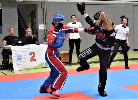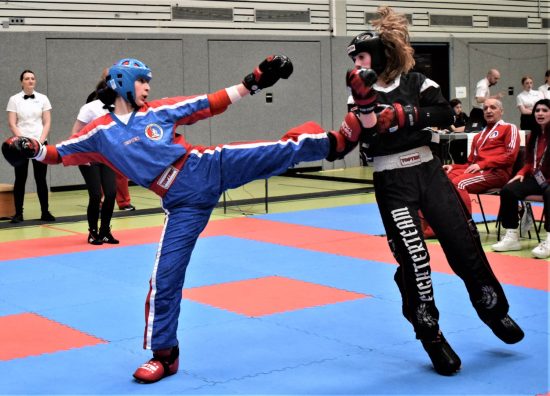 Zweimal Silber erkämpfte bei den Junioren bis 60 Kg Mariam Aouragh. Im Point Fighting traf sie im Finale auf die sehr starke Nationalkämpferin Zoe Wittig (Butzbach). Es war ein hochklassiges Gefecht. Mit schnellen, starken Fuß und Fausttechniken setzte Mariam konsequent ihr Treffer und führte bis kurz vor Schluß mit 3 Wertungspunkten. Eine kleine Konzentrationsschwäche ermöglichte allerdings Zoe Wittig noch den Punktgleichstand und damit die Verlängerung. Beide Kämpferinnen konnten auch hier Punkten, allerdings mit dem etwas besseren Ende für die Kämpferin aus Butzbach und damit Silber für Mariam.