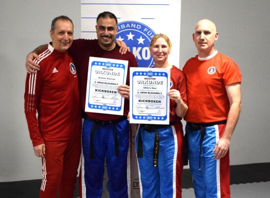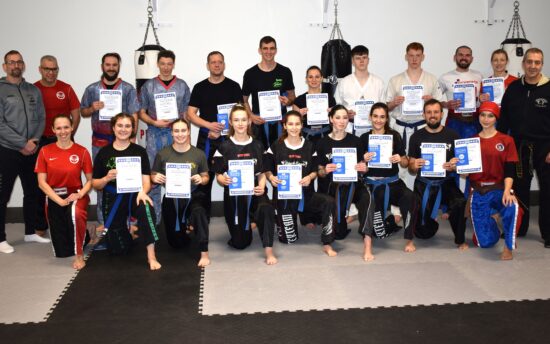 Bei der Zentralen Gürtelprüfung des Hessischen Kickbox Verbandes (HKBV) am 13.12.25 in Gießen konnten die Teilnehmer ihre Prüfung zum Braungurt, 1. und 2. Meistergrad ablegen.