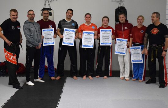 Wir gratulieren noch einmal allen Teilnehmern zur gezeigten Leistung und wünschen ihnen viel Freude mit ihrem neuen Gürtelgrad.